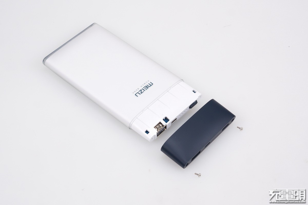 M10时底盖是跟壳体一样使用半透明颜色的盖板,M20底部盖板则是改用头盖相同颜色来做盖板,小编手上这个魅蓝M20是蓝黑色的头,与之部搭配的是蓝黑色盖板。铭牌信息一览,容量:10000mAh/38.5Wh、型号:M20、产品名称:魅蓝双向闪充移动电源、输出:5-6V/3A__6-9V/2.6A__9-12V/2A、输入:5-9V/2A__9-12V/1.5A、珠海市魅族科技有限公司。